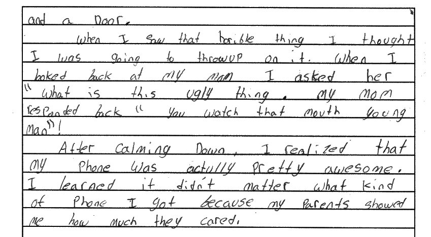 Oscar composed an entertaining story with a wonderful message about a time things did not go the way he planned. Notice the strategy he used to organize his paper into paragraphs.